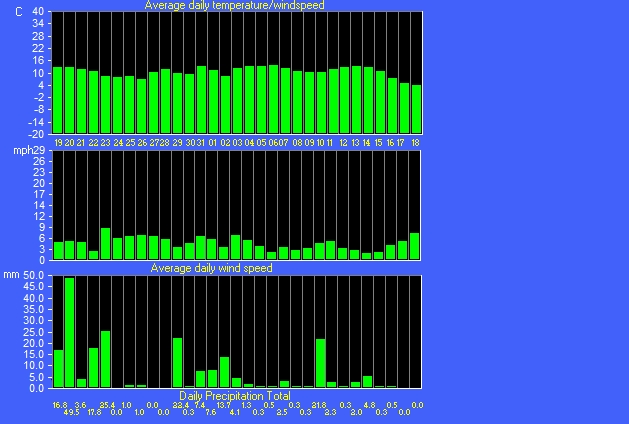 Maximum gust speed = 28.8 mph from 203°(SSW) on day 03 at time 21:56